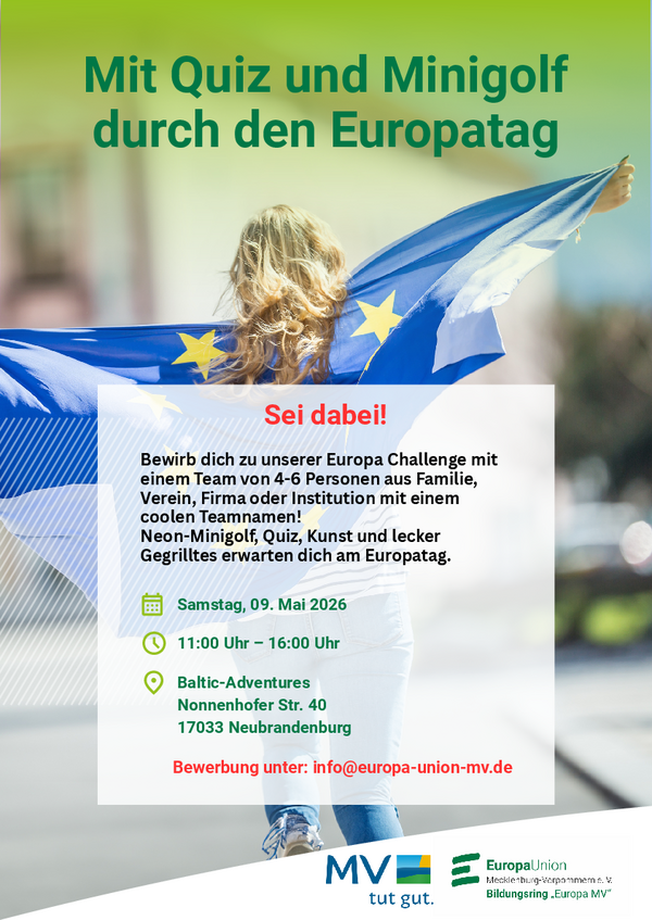 Die Europa-Union MV freut sich auf die Zusammenarbeit mit engagierten Vereinen, Institutionen und Bürger:innen, um Europa auf lokaler Ebene erlebbar zu machen.